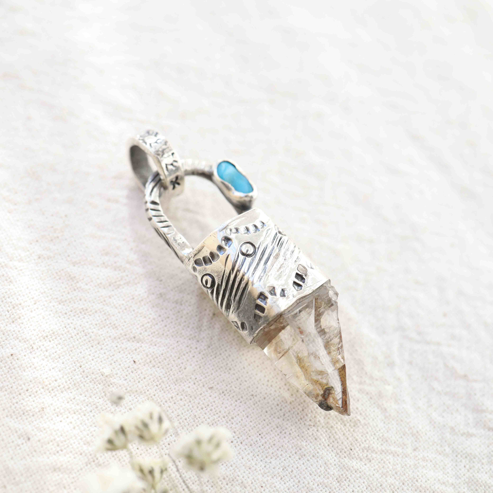 Pendentif Quartz clair et Turquoise